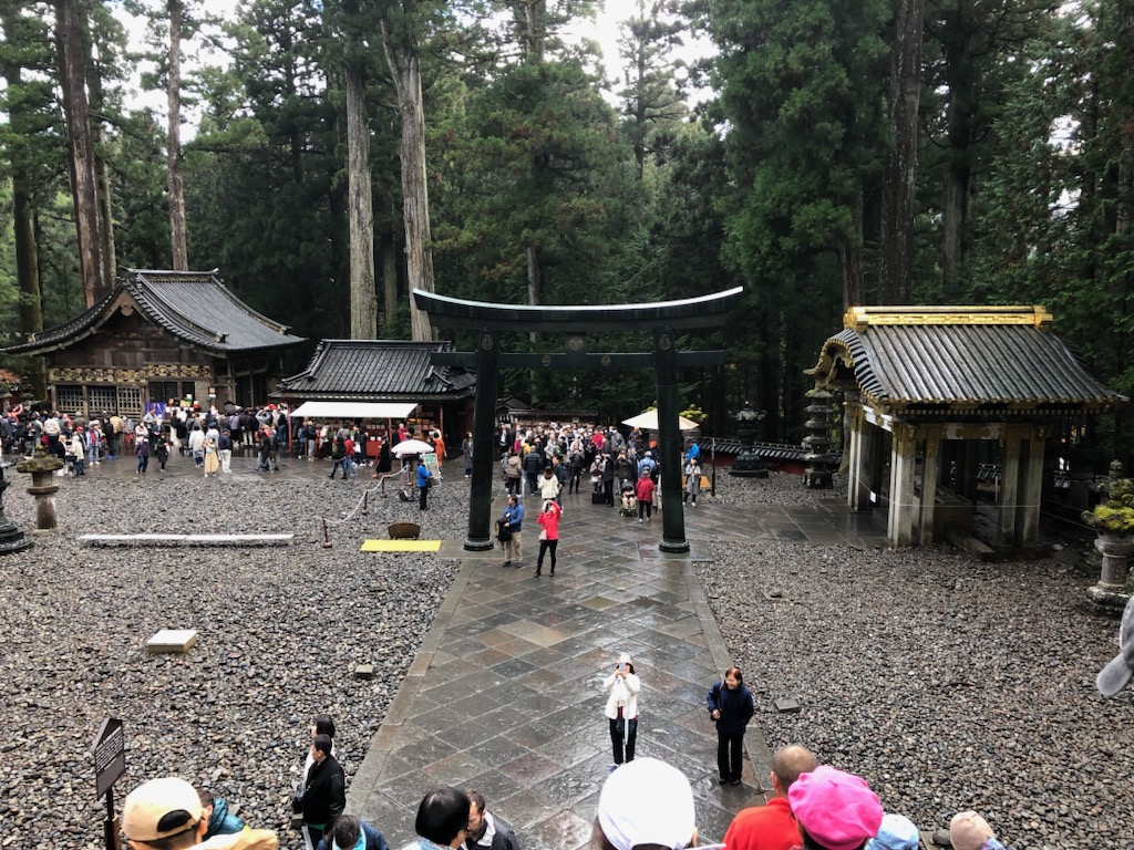早速日光東照宮に参拝。長く玉砂利が敷かれた参道先にある鳥居を目指す。