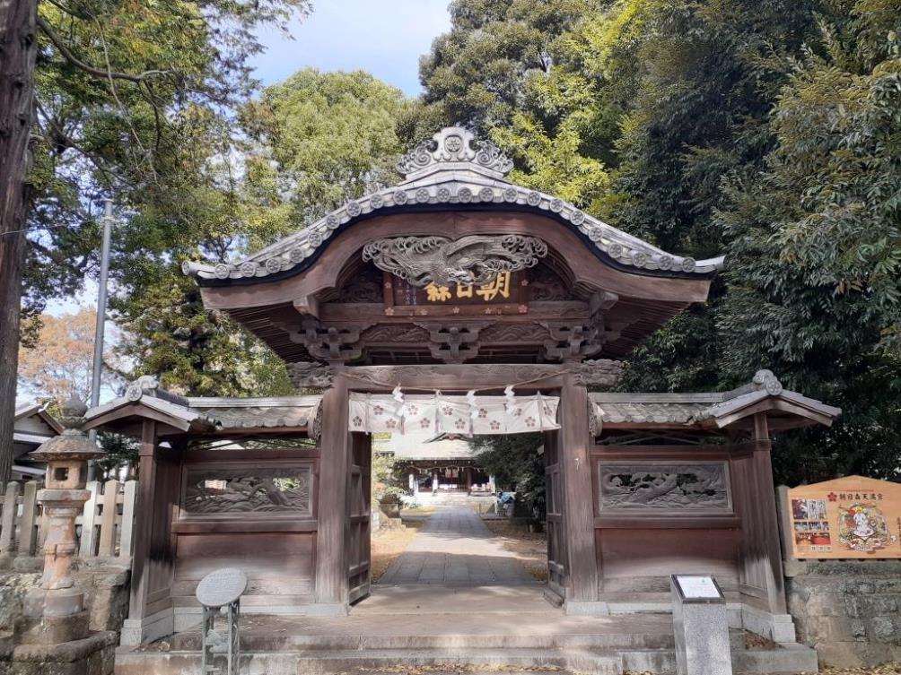 JR両毛線佐野駅北口に隣接している城山公園は、明治22年に開設された県内最古の都市公園で、佐野城跡にあり、市の史跡及び名勝として文化財指定を受けて古くから市民に親しまれているという。この城山公園の西側で、南北に通じる「公園西通り」を300m程北上し、丁字路を左折し、暫く進むと朝日森天満宮の朱色の二の鳥居に達することができる。