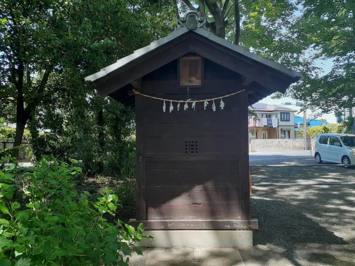 境内に至り、すぐ左側には神興庫らしき倉庫あり。 神興庫の反対側にある社務所。