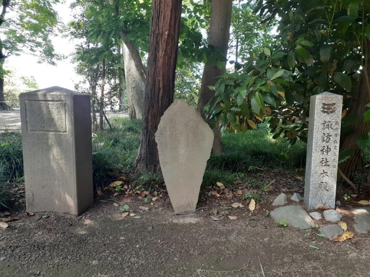 「桶川市指定文化財 諏訪神社本殿」の石碑等が並ぶ。