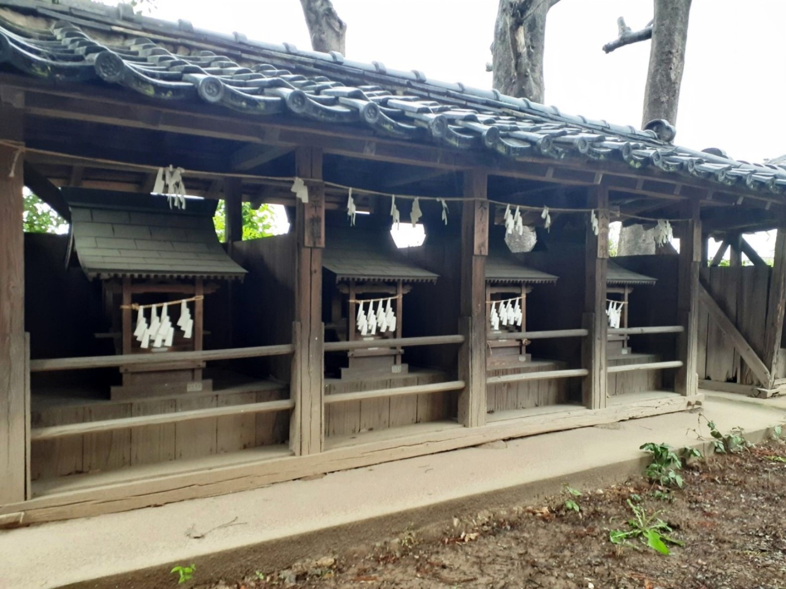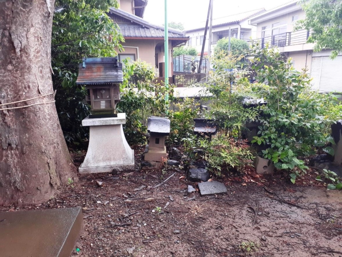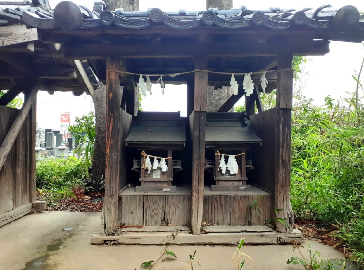 社殿の奥に並ぶ境内社(写真左・右)