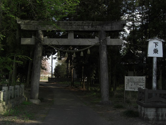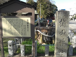 東の入口の一の鳥居横につい近年まで大楡の神木(樹齡約600年・県天然記念物)があったが、今は切り株のみで近くには表札がある。