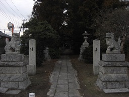 横瀬神社 社号標 参道 東西に長く伸びていて正面に小さく