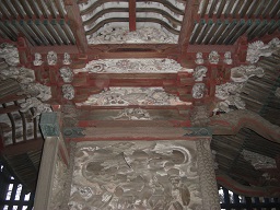 鞘殿内には彩色豊かで見事な壁面彫刻の本殿