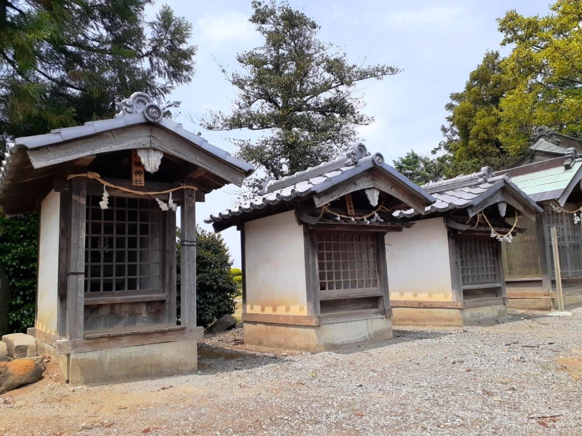 社殿の左右奥にはそれぞれ境内社・末社が鎮座する。