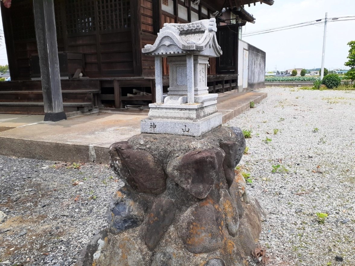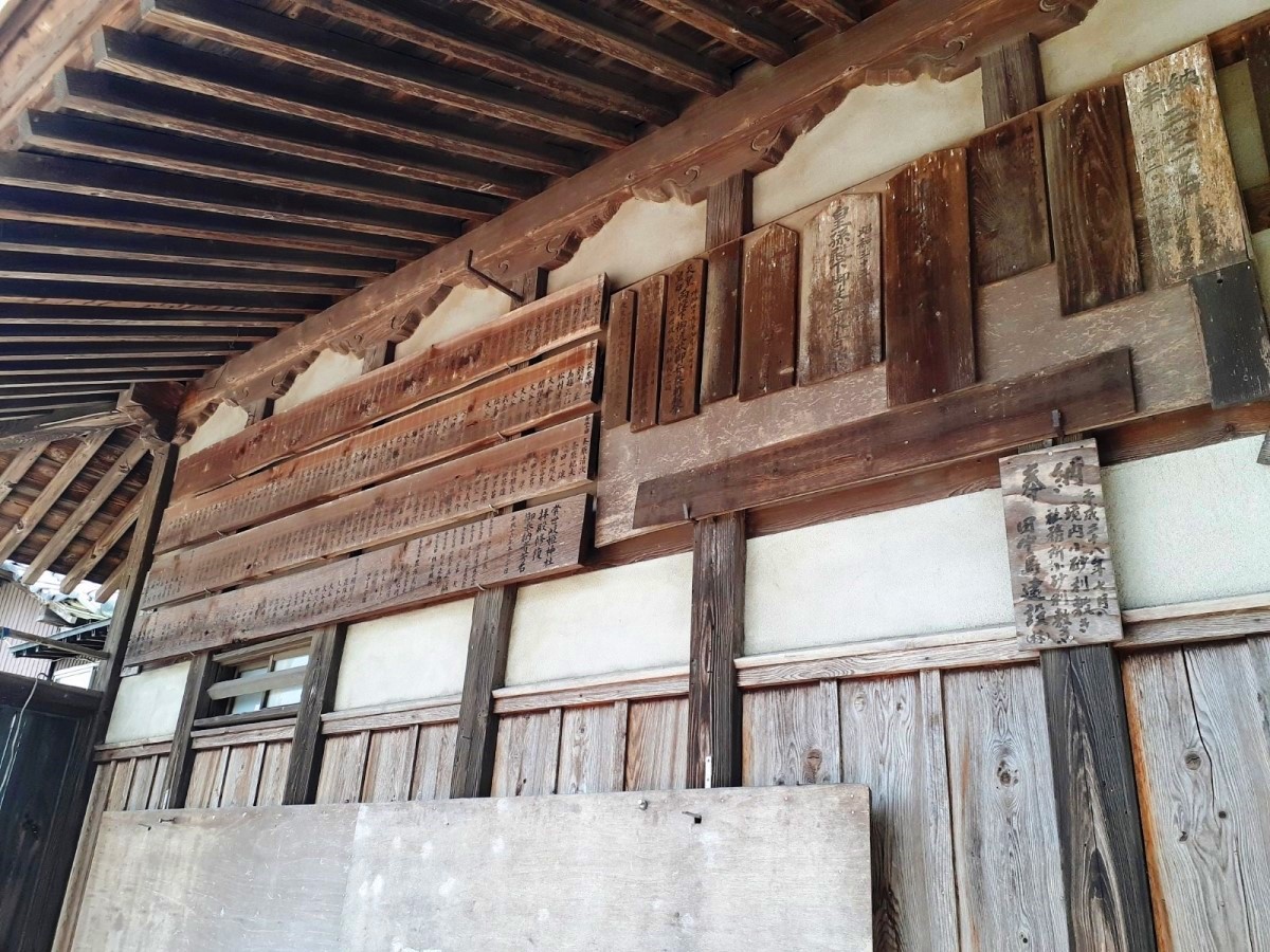 社殿の至る所に奉納額等が掲示されている。 社殿手前右側に静かに鎮座する山神
