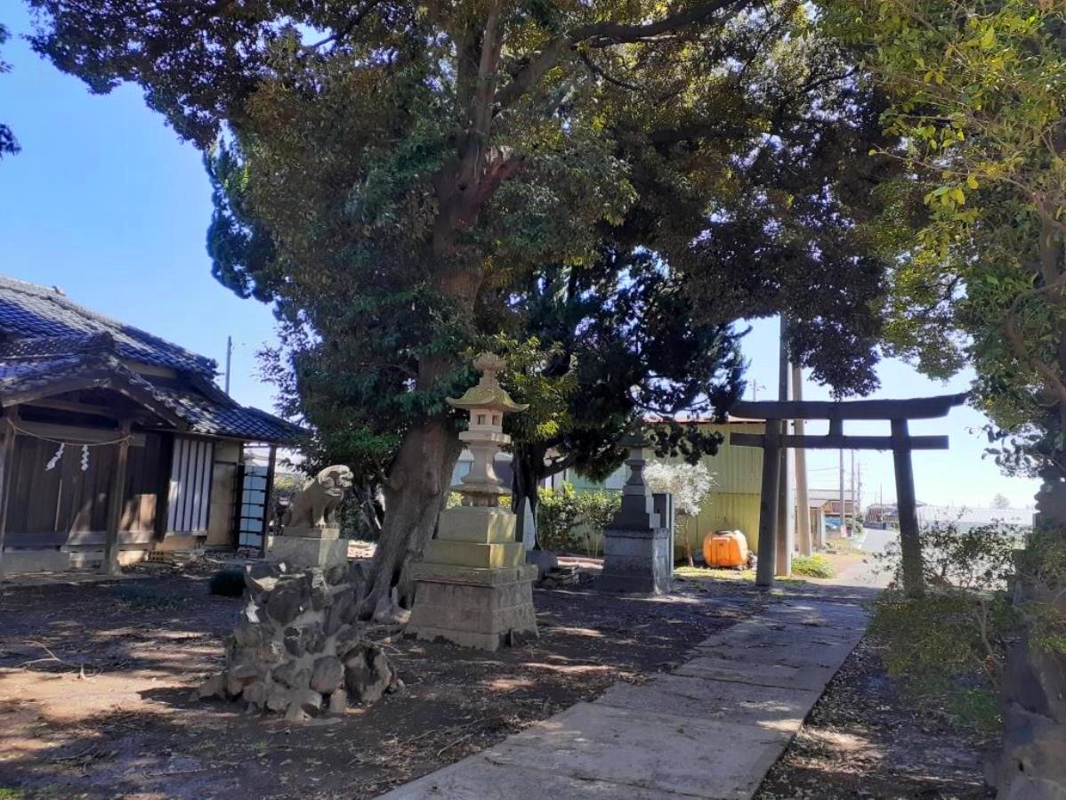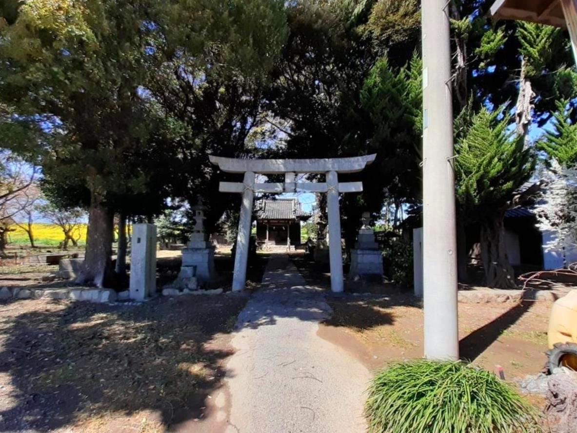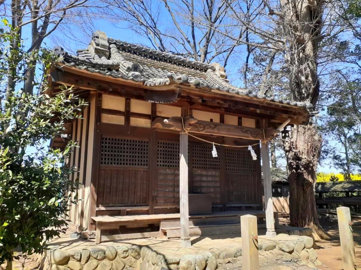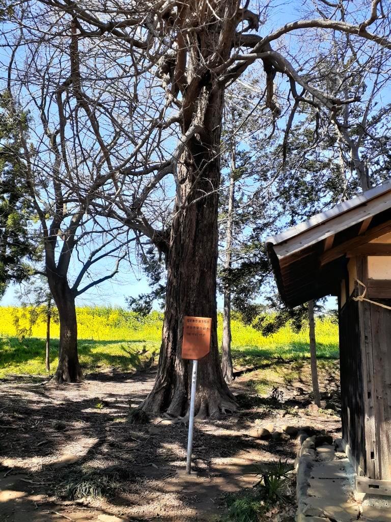 社の背後には小山川の土手が見え、その土手沿いには、春先に見られる菜の花が一面に咲き誇っていた。参拝当日の天候は晴れであったが、風は強く、肌寒く感じたが、やはり目の前に広がる菜の花の風景には心癒され、春の到来を身近に感じるものであった。