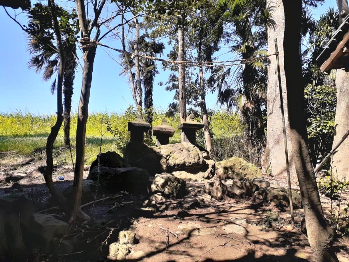 社殿の右横に祀られている石祠三基 石祠三社の隣にも境内社が鎮座