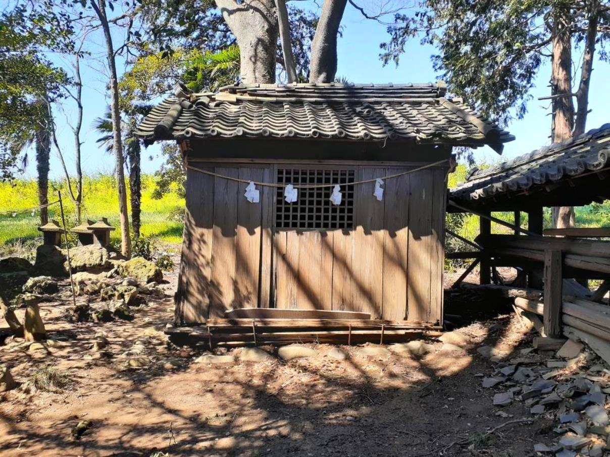 社殿左手にある境内社・詳細不明。 社殿手前で右側にある社務所