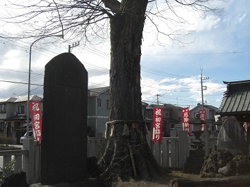 境内には、樹齢350年のご神木の大欅がこの社を守るかのようにそびえている。神木とは、古神道における神籬(ひもろぎ)としての木や森をさし、神体のこと。また依り代・神域・結界の意味も同時に内包する木々であり、日本人は四季折々の自然に対して畏敬の念を抱き、そこに神様を信仰するようになった。今なお暮らしの中にあるご神木が「日本人の心」によって守られている。どんなに文化、文明が進もうとも、日本人としての先史時代から頑なに続く遺伝子は絶えることはない。大切にしたいものだ。