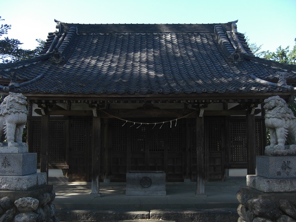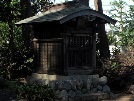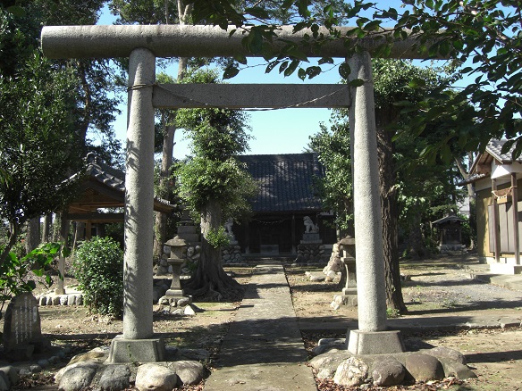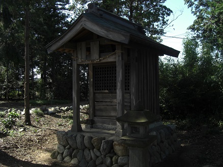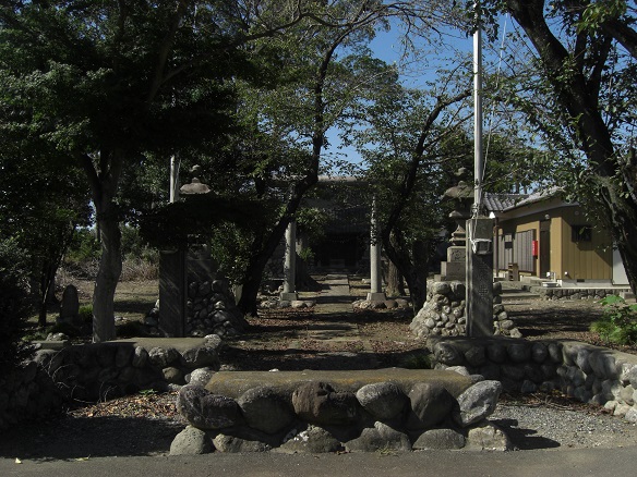 この社の一の鳥居前には寄居町の波羅伊門神社や男衾の小被神社も以前はこんな造りだったが、鳥居の前が交通止めのように石垣造りになっている社はそれほど多くない。同じ一族の共通した建築方法だろうか。