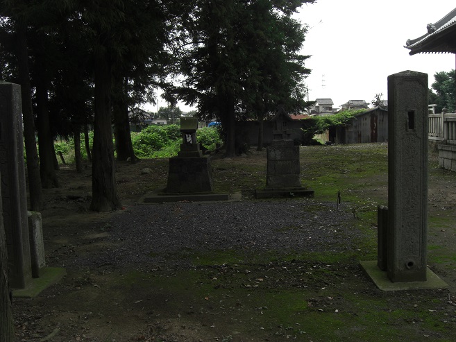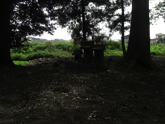 社殿の左側にある開放的な社叢とは全く異なったこの社の古の雰囲気のある空間があった。 写真左側の2社は境内社か、写真右側は末社だろうがどちらも詳細不明。