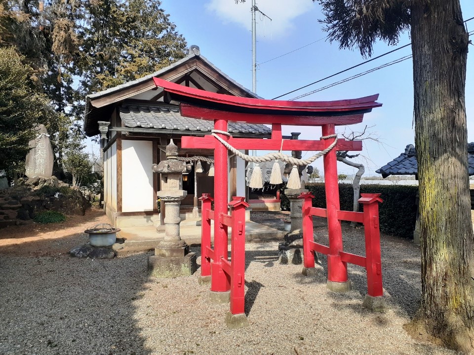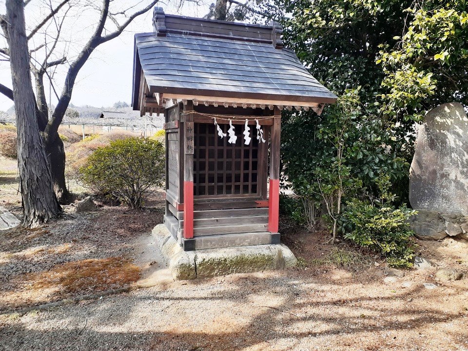 社殿手前左側にある神楽殿 神楽殿の右側に鎮座する境内社・神明社