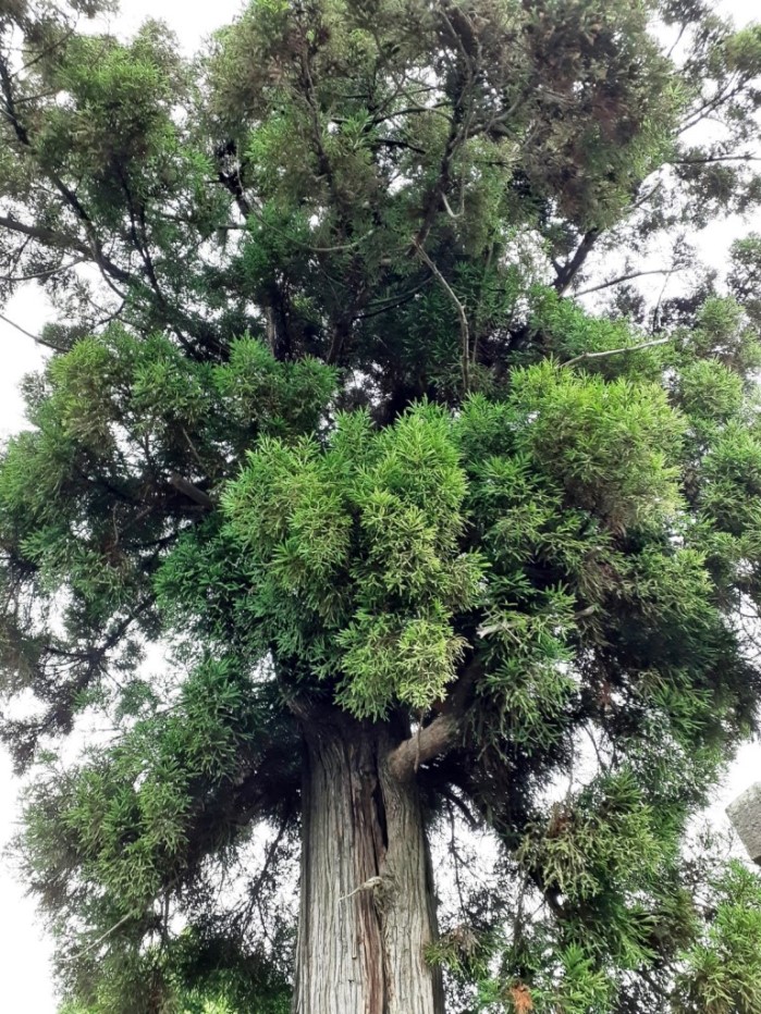 鳥居のすぐ先に聳え立つご神木(写真左・右)