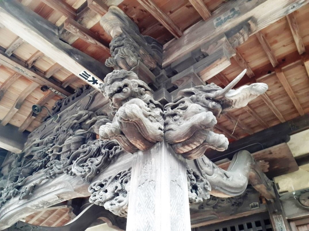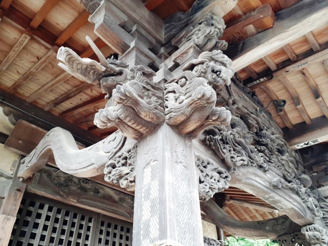拝殿向背部等の彫刻が素晴らしく、江戸時代の職人技の高度な技術を感じる。今は長年の風雪にさらされて彩色もほとんど薄れているが、創建当時は艶やかで美しかったことだろう。