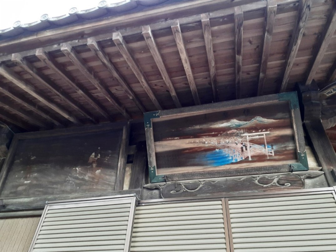 社殿上部に飾られている奉納額(写真左・右)。