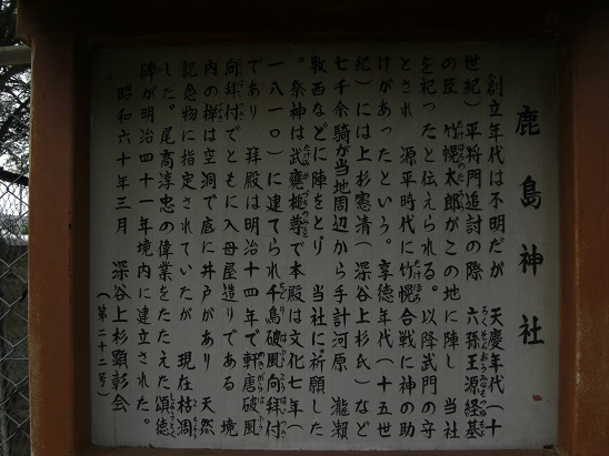 拝殿には渋沢栄一が揮毫になる「鹿島神社」の扁額が掲げられている。