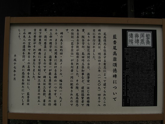 藍香尾高翁頌徳碑について
