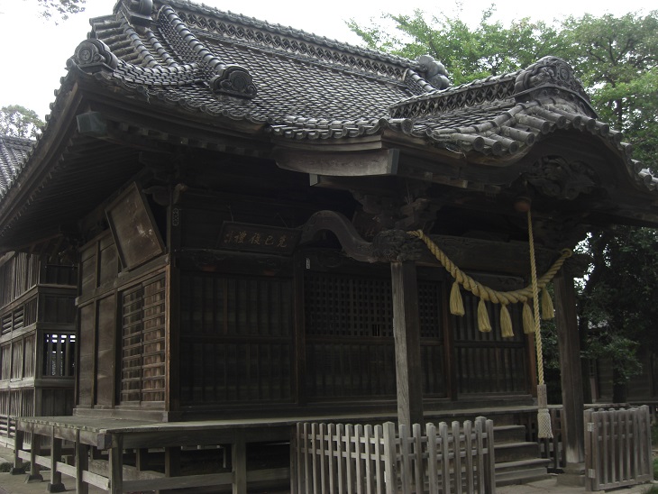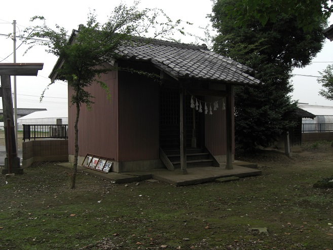 第二は、かって隣村の大塚島に鎮座する鹿島大神社の社領であったと伝える下手計・沖・戸森・内ヶ島・田中(伊勢方の小字)などの村々などには「鹿島社」が祀られている。このことから、当社は往時、この鹿島大神社から分霊を受けたとする説である。