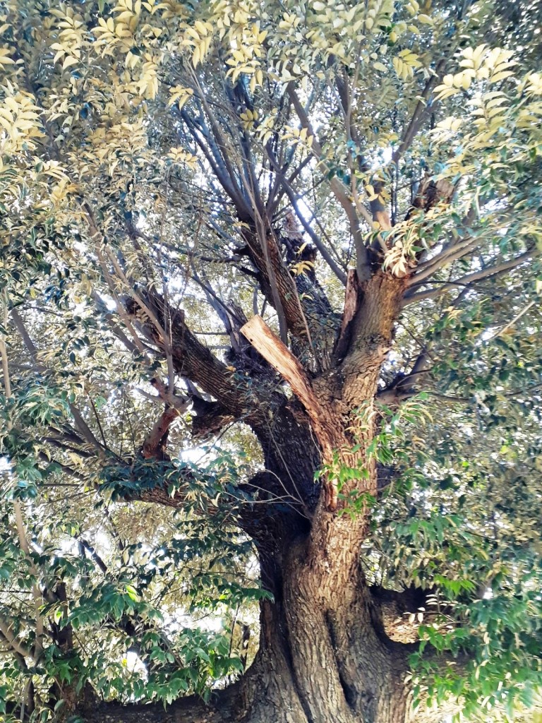 拝殿手前左側に聳え立つご神木(写真左・右)