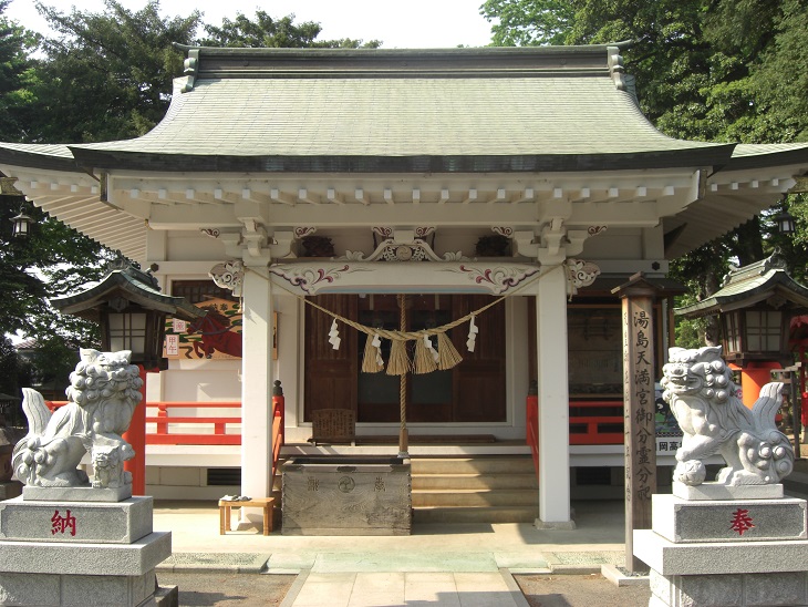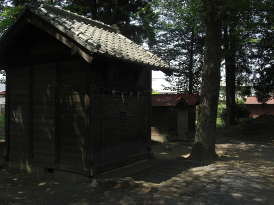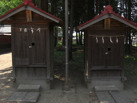 社殿の右隣に祀られている天神社 社殿の東側には覆屋があり、左から