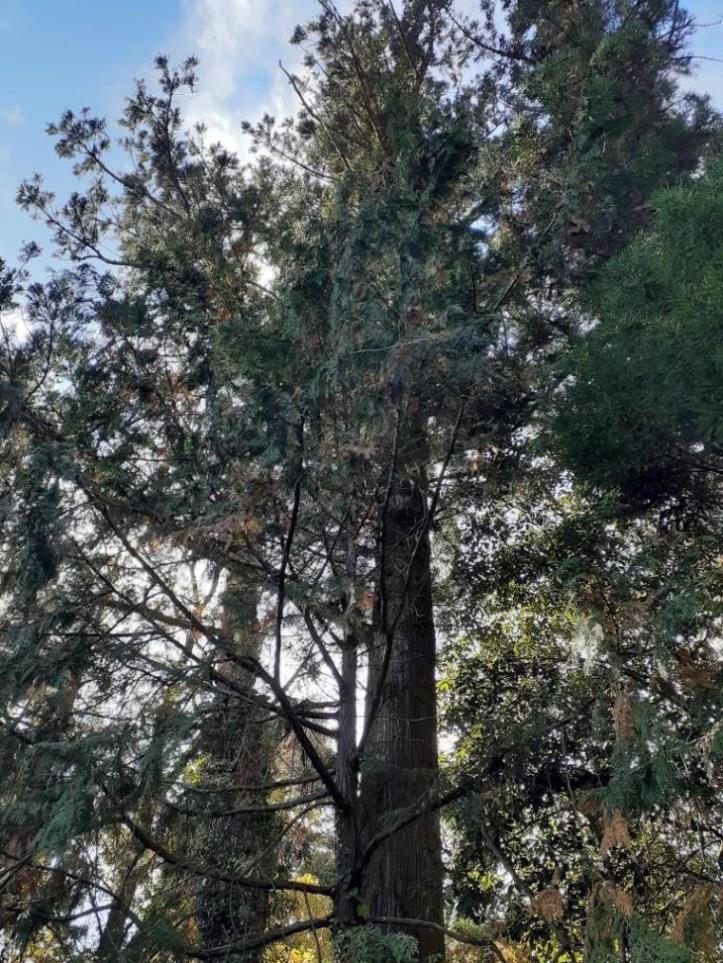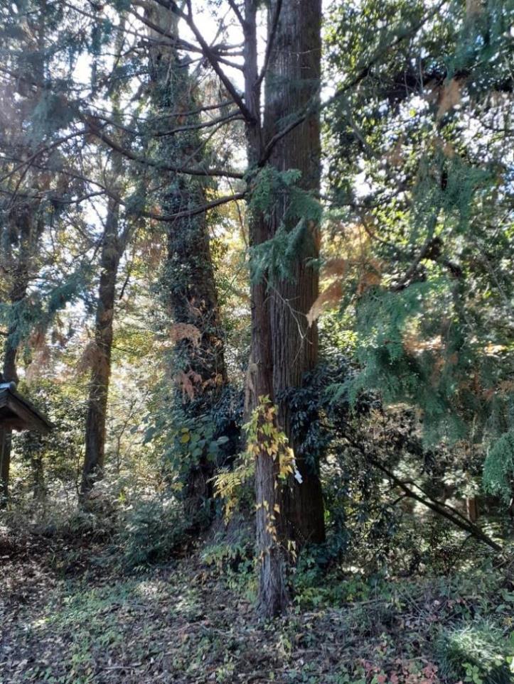 境内に一際目立ち聳え立つ杉のご神木(写真左・右)