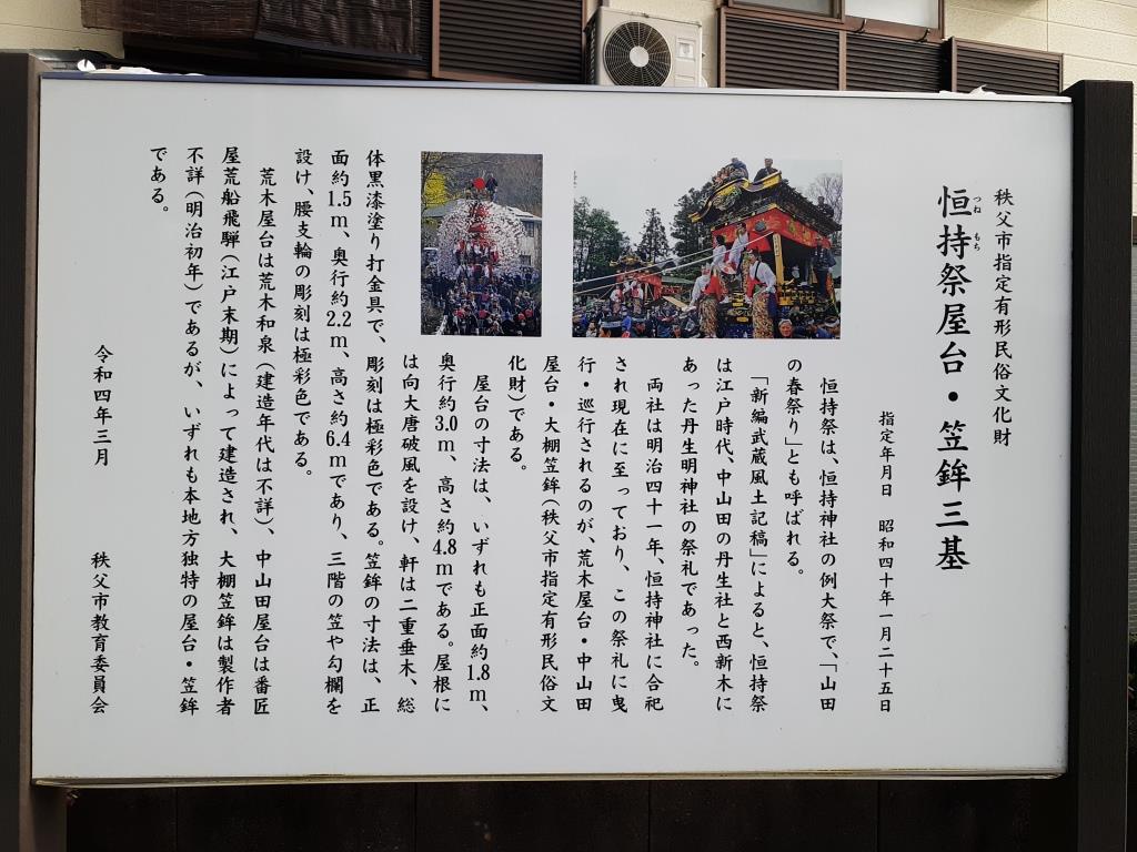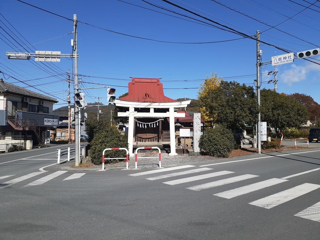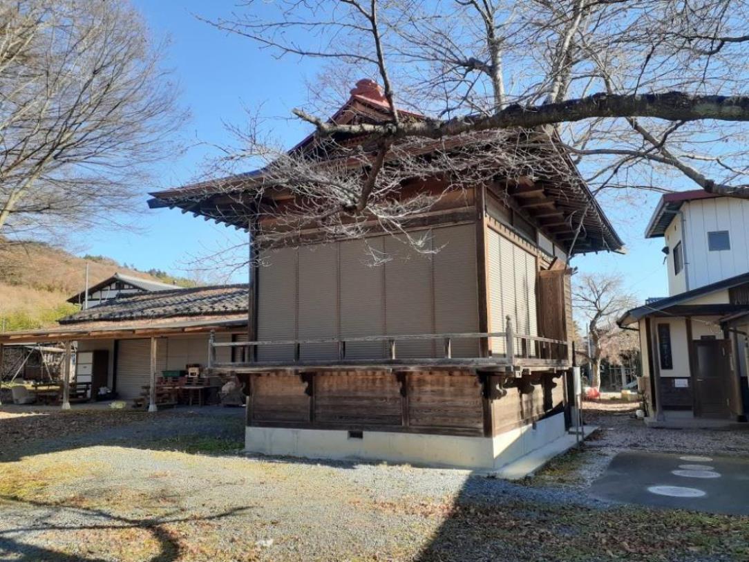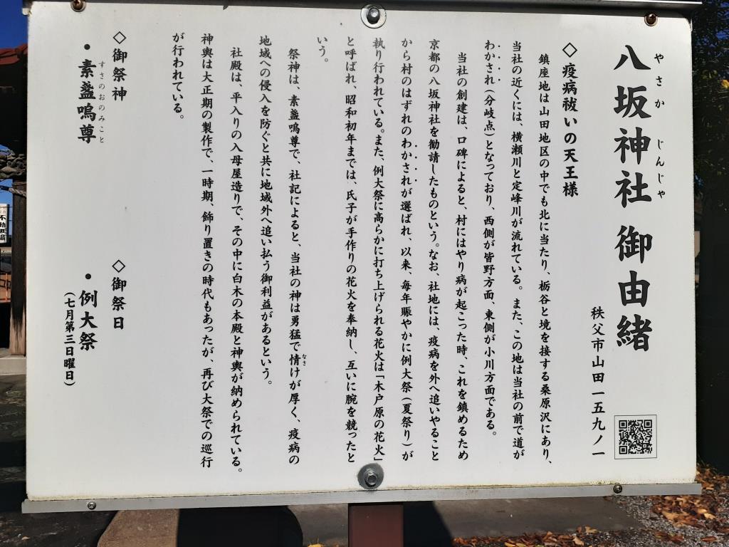 この八坂神社では毎年7月に例祭が行われ、町内を傘鉾の山車が引き回されるという。