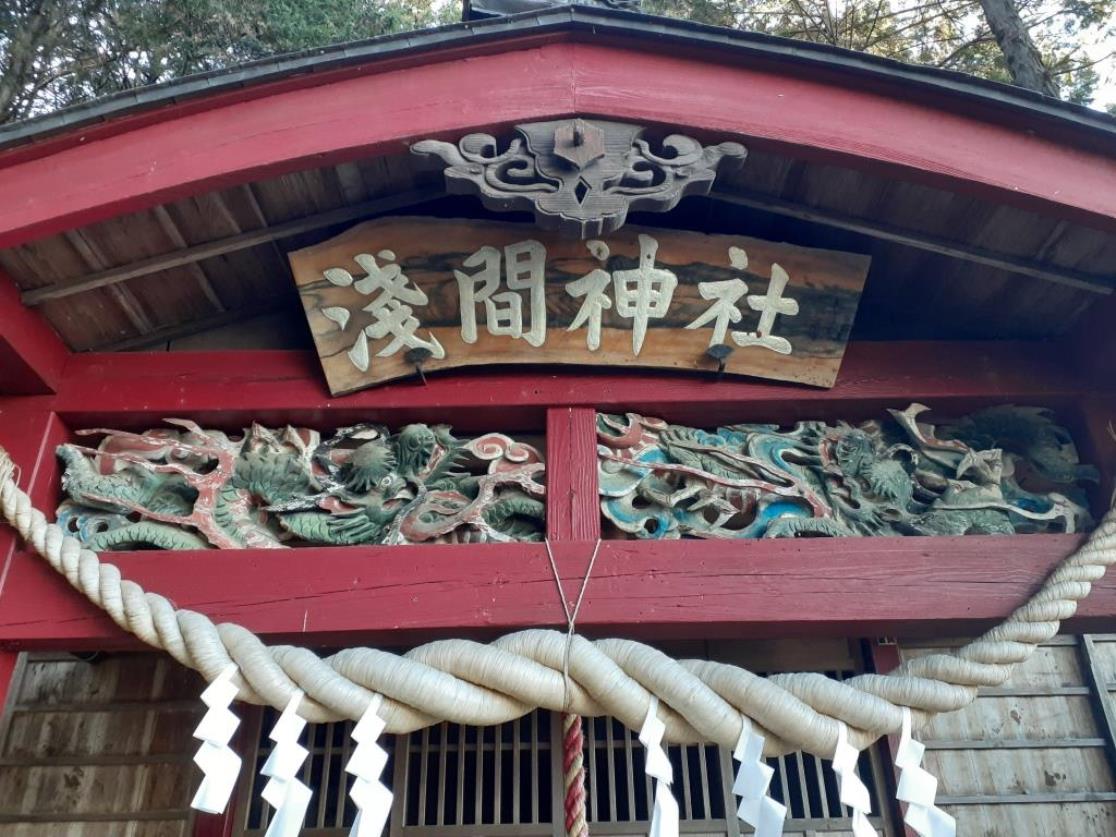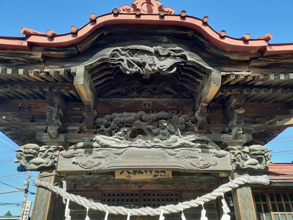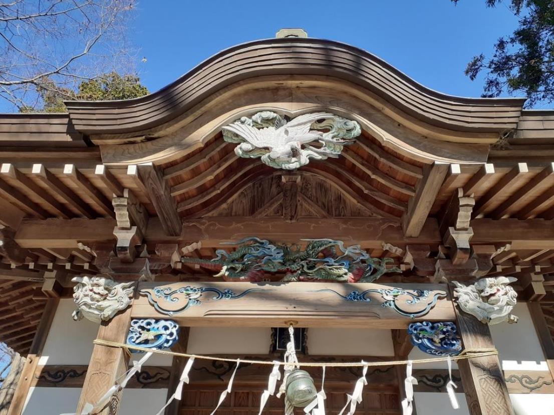 拝殿向拝部には龍の宮彫りがされている。