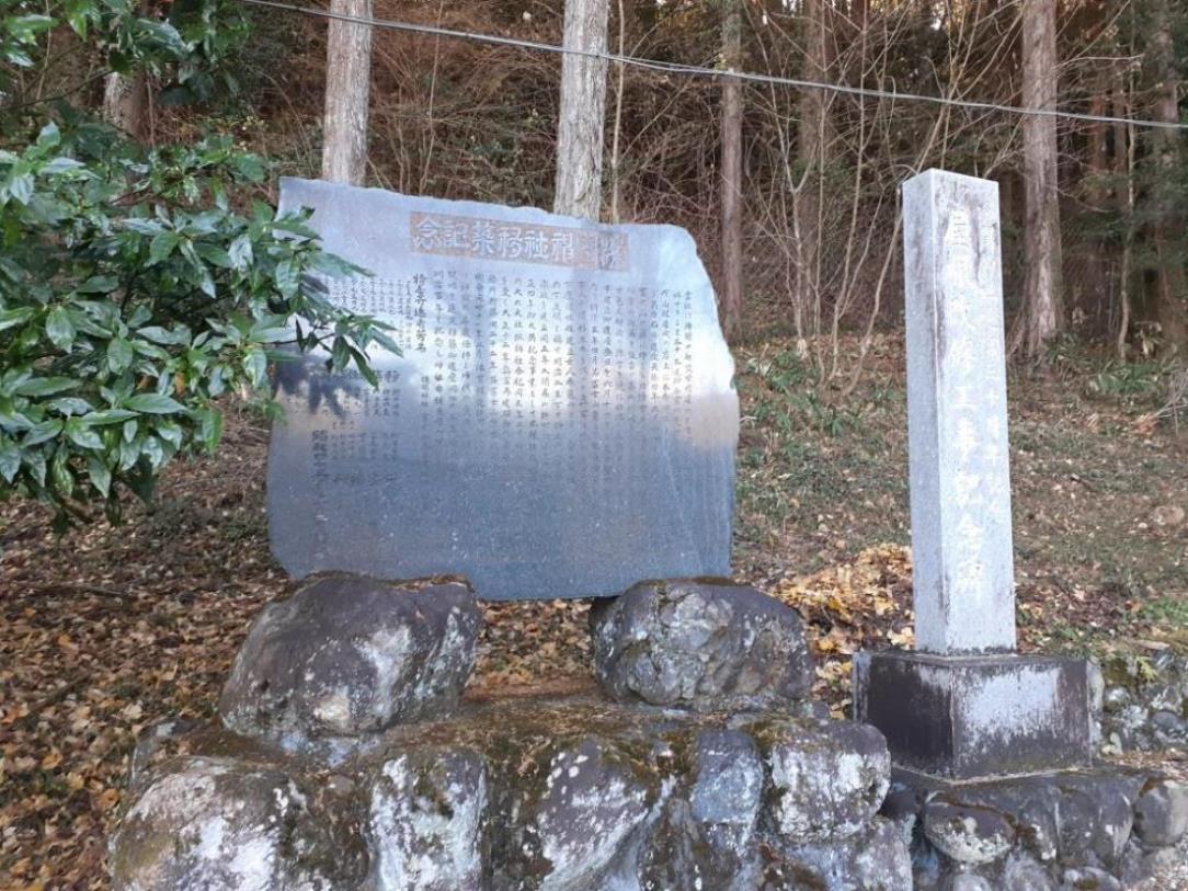 案内板に記されている二人の子供とは、それぞれ、「深瀬君・斯麻君」といい、この二人もまた、共に農事を民に教え、開墾を進めた。また穂積君は、その居住地を稲負部村と号し天照大神と熊野大神を奉斎したが、神の心にかなってか、父子による開墾は大いに進んだ。そのため、当地には深瀬田(現在の福瀬。深瀬君が開いた地)、島平(斯麻君の居館の跡)、植沼(現在の上野。初めて苗を植えさせた所)、焼畑(現在の矢畑。焼畑を行った所)などこの父子のちなむ地名が数多く残っている。