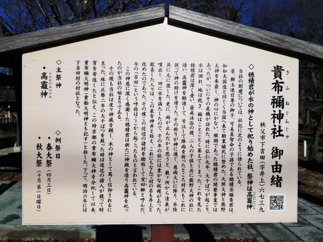 貴布禰神社 御由緒 秩父市下吉田(字井上)六七三九