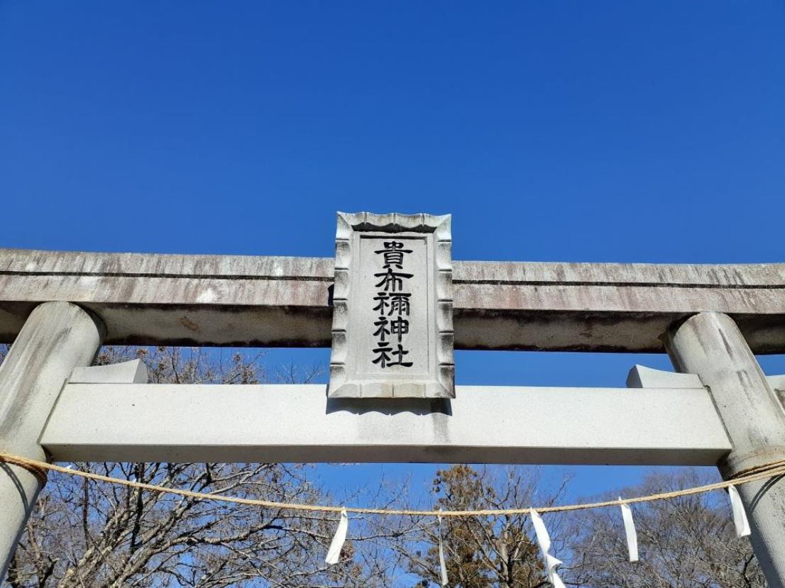 一の鳥居に掲げてある「貴布禰神社」の社号額