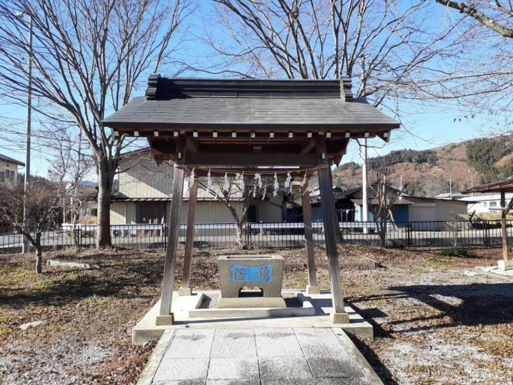 鎮座地である字井上区域は、水利の便が悪かったため、昔は自分の家の生活用水を賄えるだけの井戸を持つ家は数えるほどしかなく、ほとんどの家では吉田川等に水を汲みに行かなければならなかった。また、何軒かあった井戸も非常に深く、しかもしばしば枯渇したという。