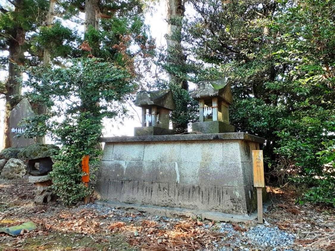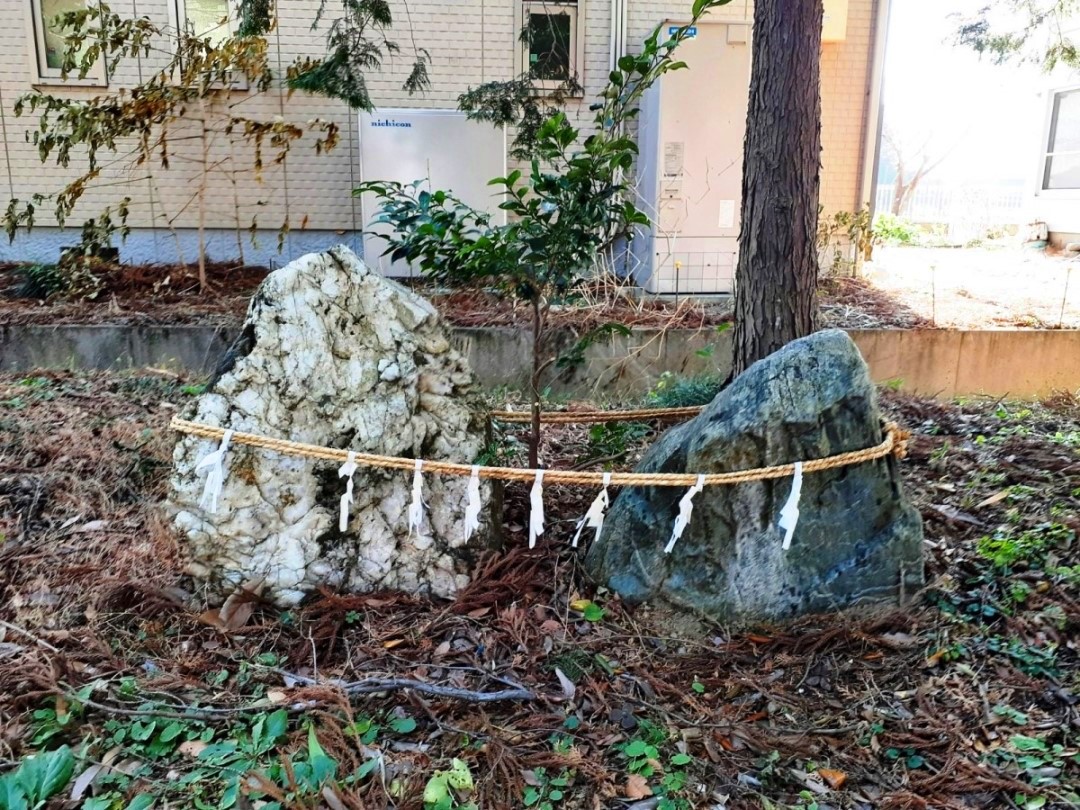 社殿の右側にある社日 社殿の奥にある磐座(陰陽石)