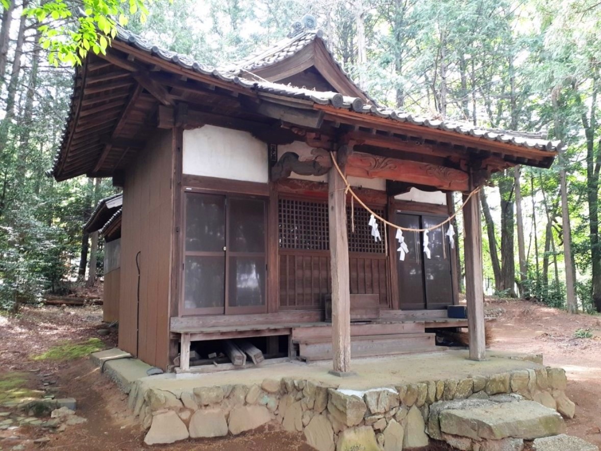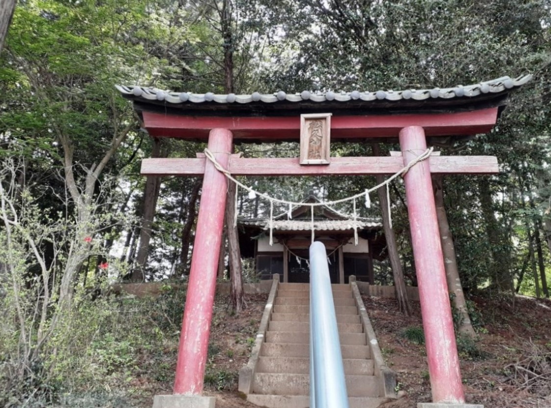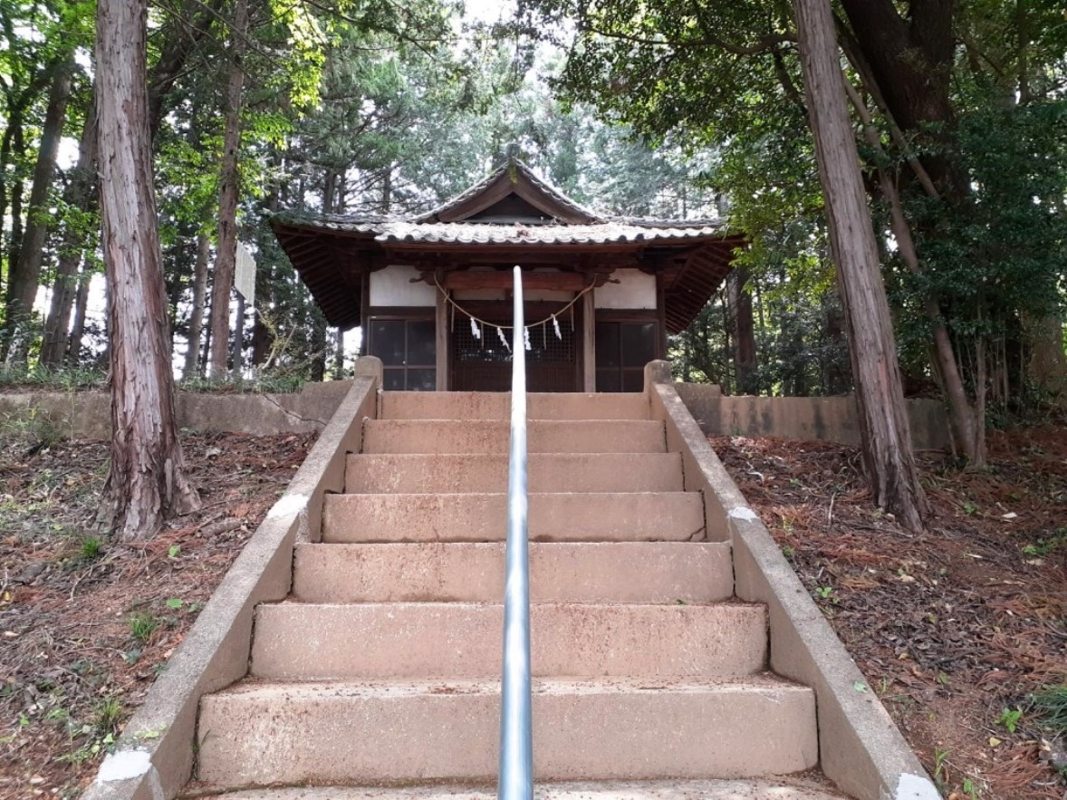 社は丘陵地、斜面上に鎮座。