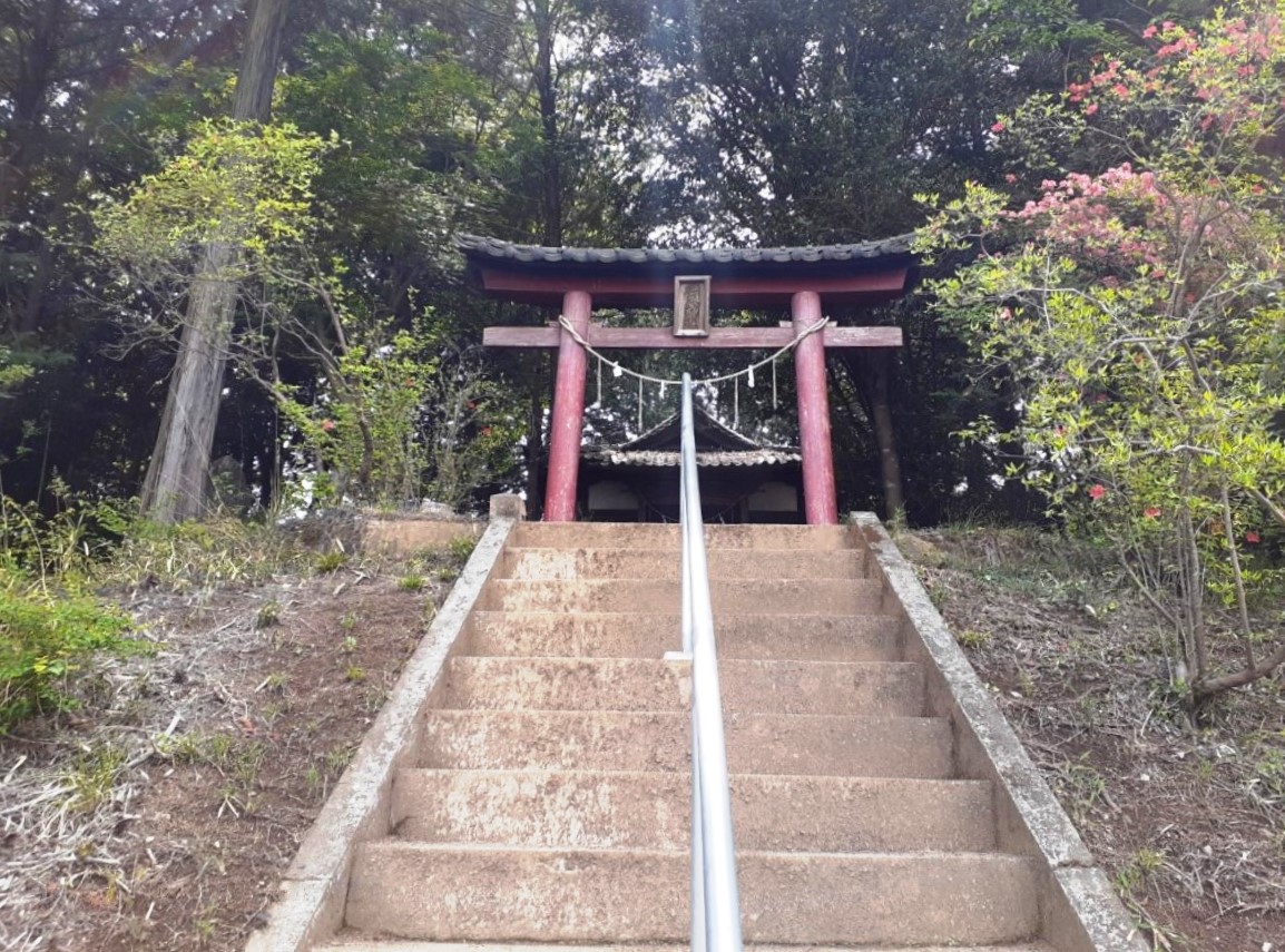 やや急な角度の石段を登ると鳥居が見えてくる。