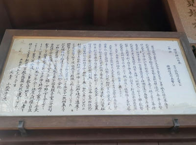 社殿の正面上部に掲げてある掲示板(写真左・右)