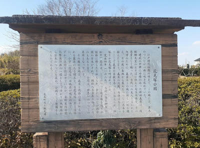 その後の当地は、義貞と内侍の墓と伝えられる墓石のある墳丘と、当花見塚に至る道筋に、小字「花見道」の地名が残るのみで、わずかに往時を偲ばせていたが、全町史跡公園化整備計画の一環として、ゆかりの地館林から若木のつつじを求め、公園として整備したものである(以下略)。