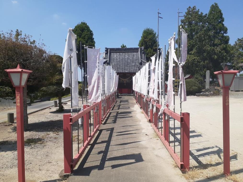 鳥居から社殿まで、参道沿いには幾重の幟が立ててあり、