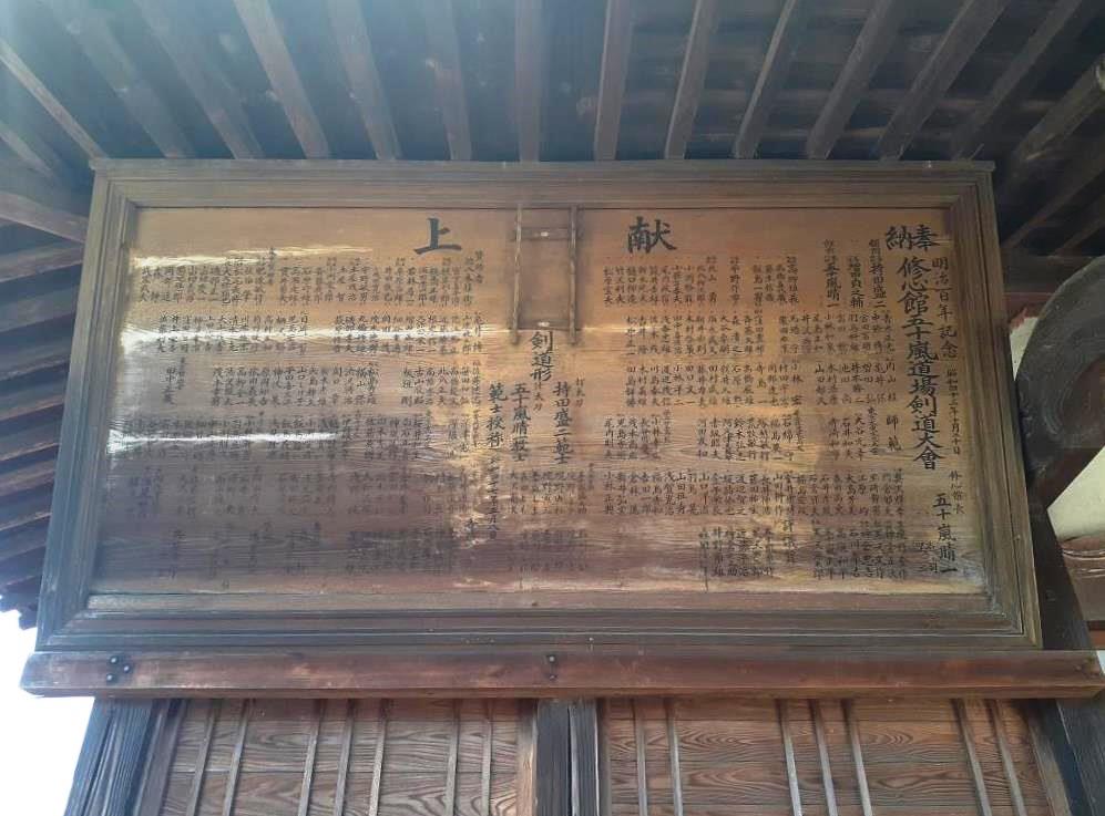 拝殿正面部 拝殿左側上部に奉納されている額