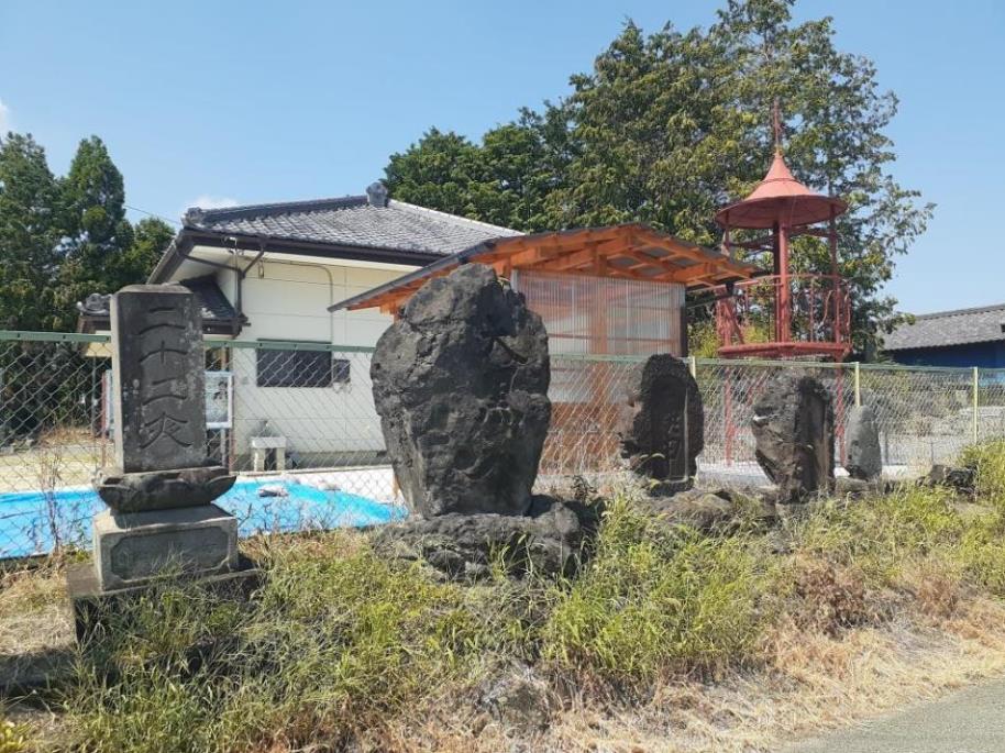社の北側道路沿いにある二十二夜塔等の石碑