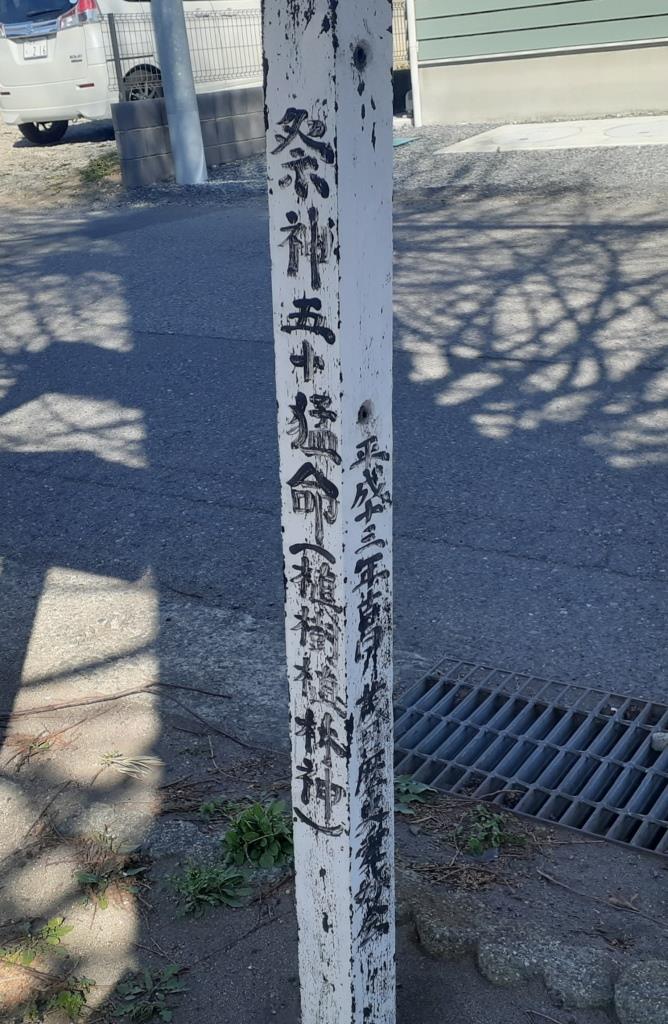 正面鳥居付近に設置されている標柱によれば、社のご祭神は五十猛命で、永禄三年(1560)に上杉謙信(この当時はまだ長尾景虎)が厩橋城(前橋城)攻めの折に、こちらに立ち寄り戦勝祈願をしたと伝えられているようだ。