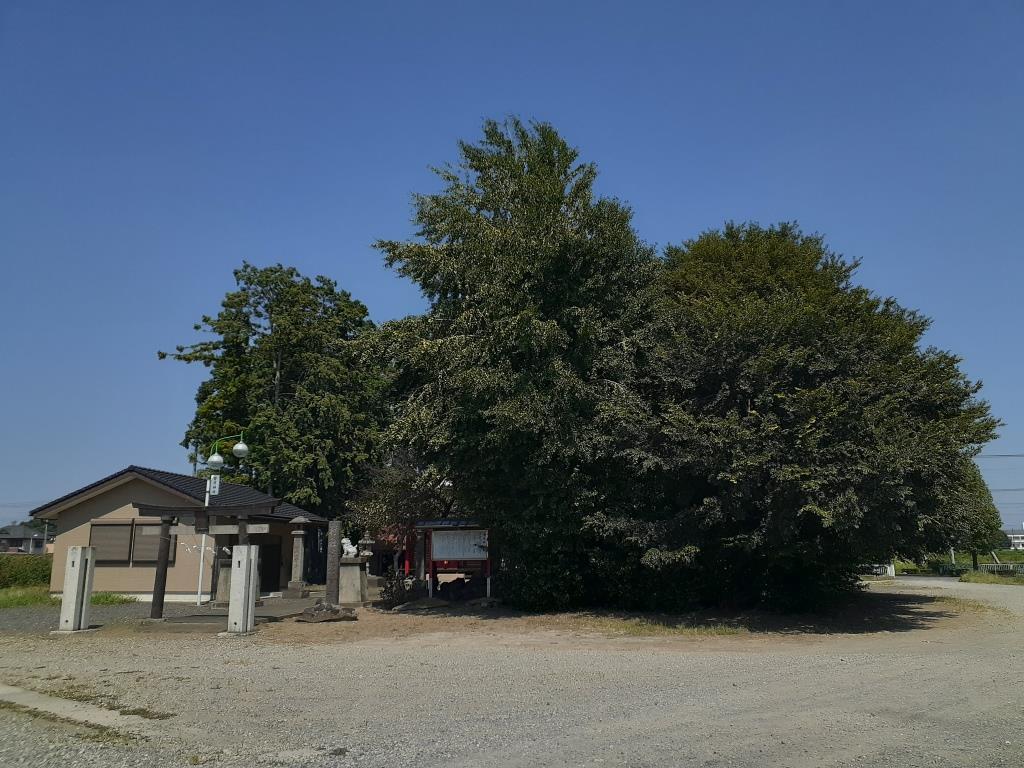 境下蓮町三柱神社から一旦北上し、群馬県道142号綿貫篠塚線に合流後東行する。目の前に広瀬川の堤防が見えてくる周囲一面長閑な田畑風景の中、進行方向正面やや右手にポツンと深い森林に覆われた境小此木菅原神社の社叢林が見えてくる。