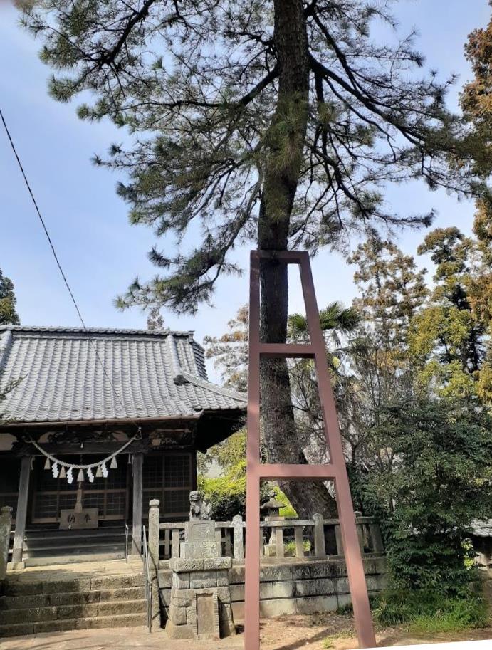 社殿の前に一際目立ち聳え立つ御神木の黒松(写真左・右)