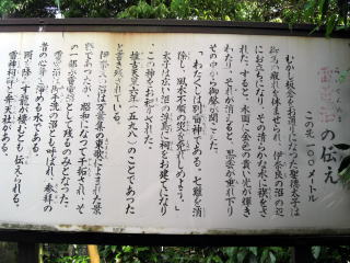 「雷電神社総本宮」と彫られた石碑 二の鳥居に左側にある由来書の看板