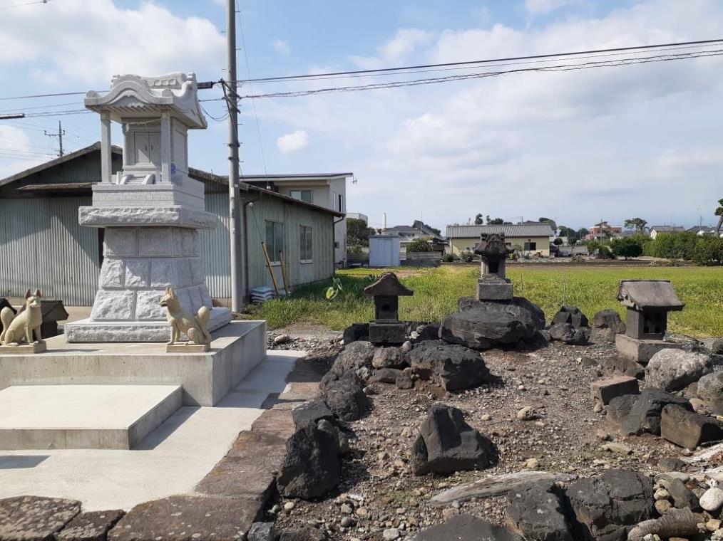 稲含神社の右側並びには石祠群が祀られている。詳細不明。