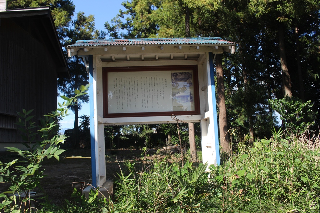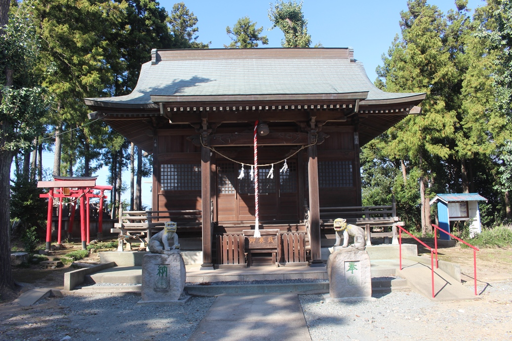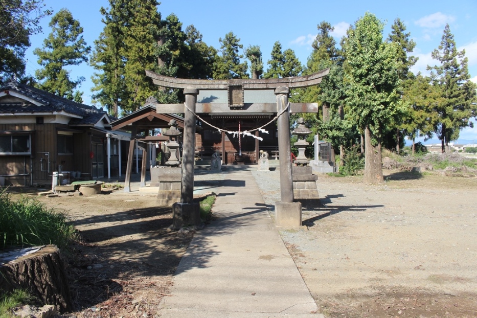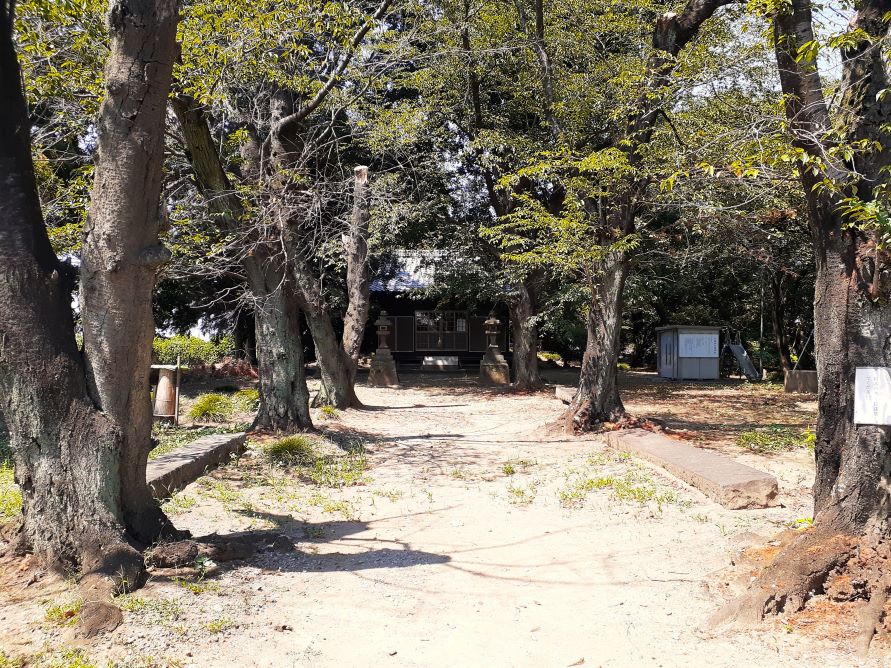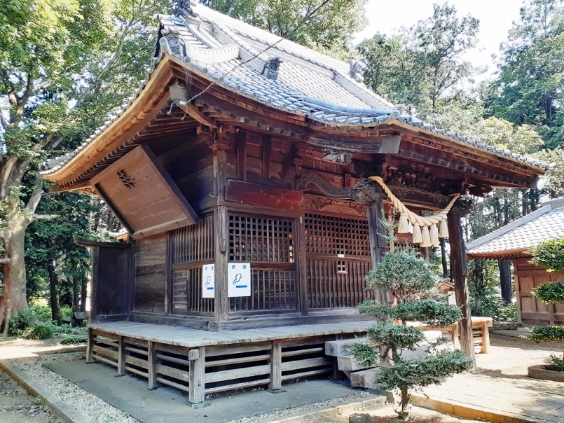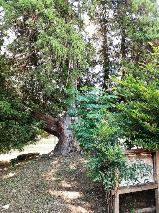 樹齢500年と思われる程の径幅が大きな大杉があったそうだが、平成25年9月の台風18号の際の強風で倒木したそうだ。但しその際に、本殿や南側に祀られている境内社群には一切被害が及ばない場所に倒れていたという。ご神木が自らの意思で安全な場所に倒木したのであろうか。