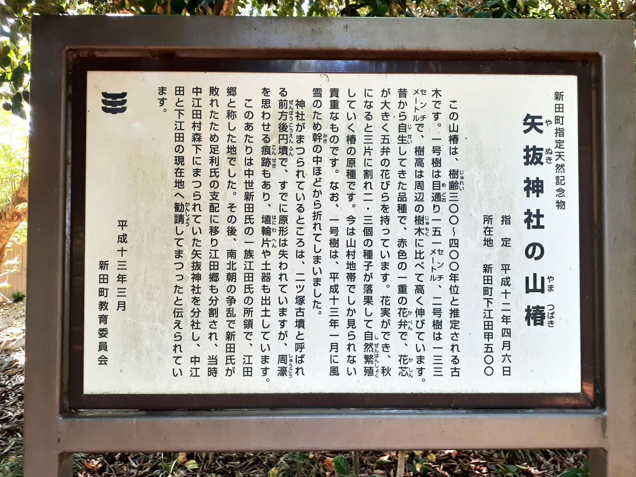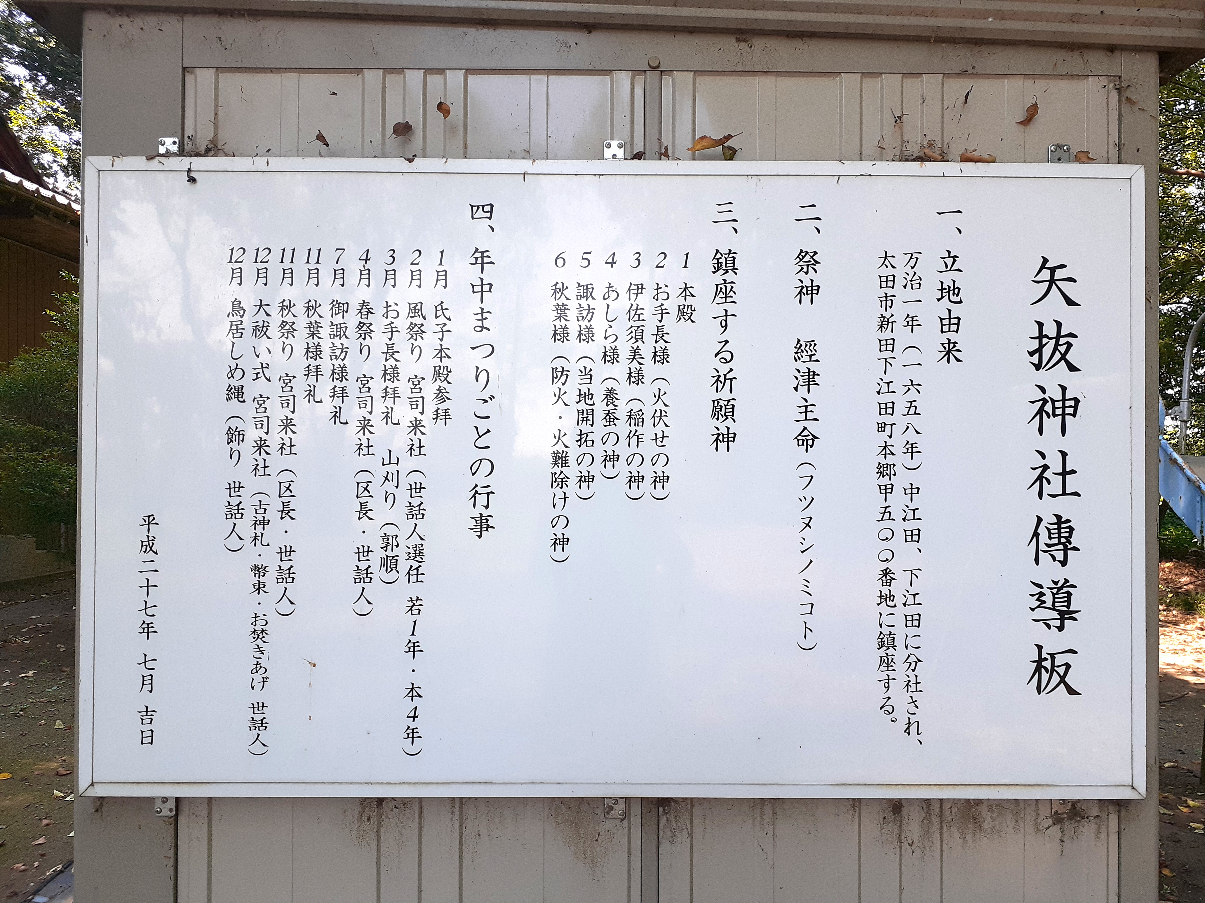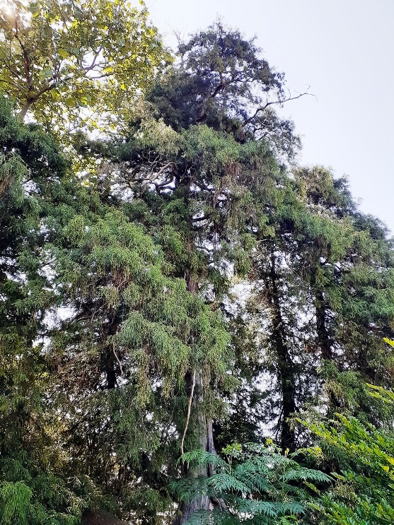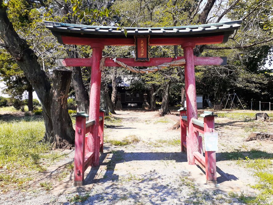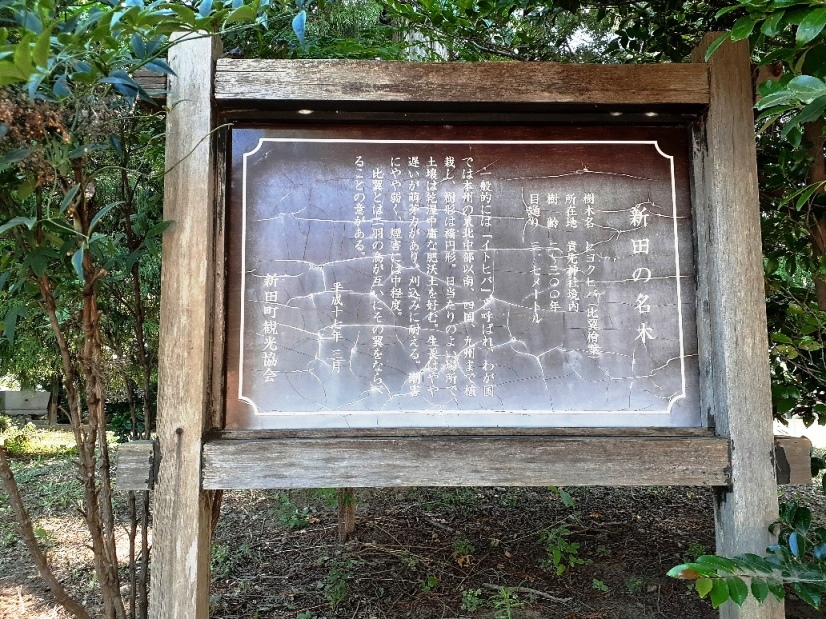 樹齢500年と思われる程の径幅が大きな大杉があったそうだが、平成25年9月の台風18号の際の強風で倒木したそうだ。但しその際に、本殿や南側に祀られている境内社群には一切被害が及ばない場所に倒れていたという。ご神木が自らの意思で安全な場所に倒木したのであろうか。
