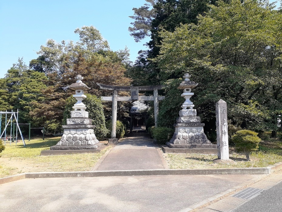 正面鳥居から参道、及び町市街地方向を望む。