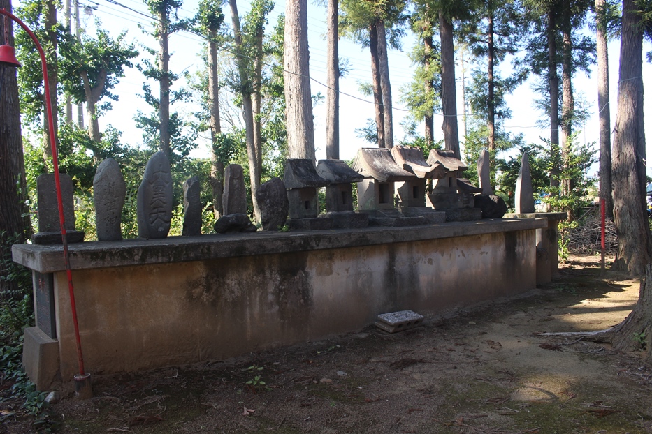 境内は社殿から左方向、つまり南側に敷地が広がり、そこには幾多の境内社が祀られている。