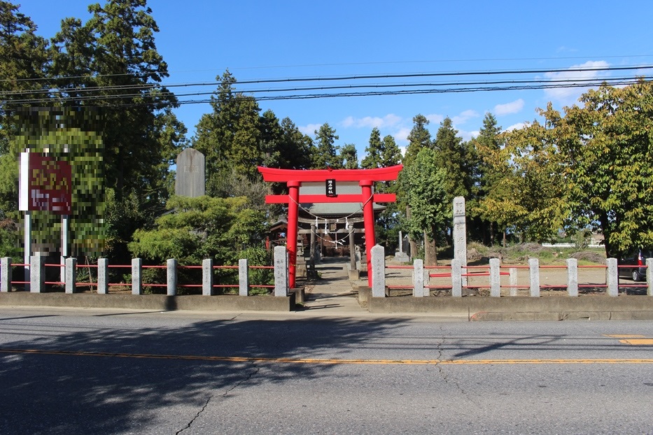 神流川の流れを左手に見ながら南北に通じる国道462号線を暫く進むが、「諏訪」Y字路の交差点で右方向に変わり、神流川と離れる。ここから旧鬼石町市街地内に入る。「諏訪」交差点から南に行くこと500m程で右手の高台上に鬼石神社の赤い鳥居が僅かに見えてくる。
